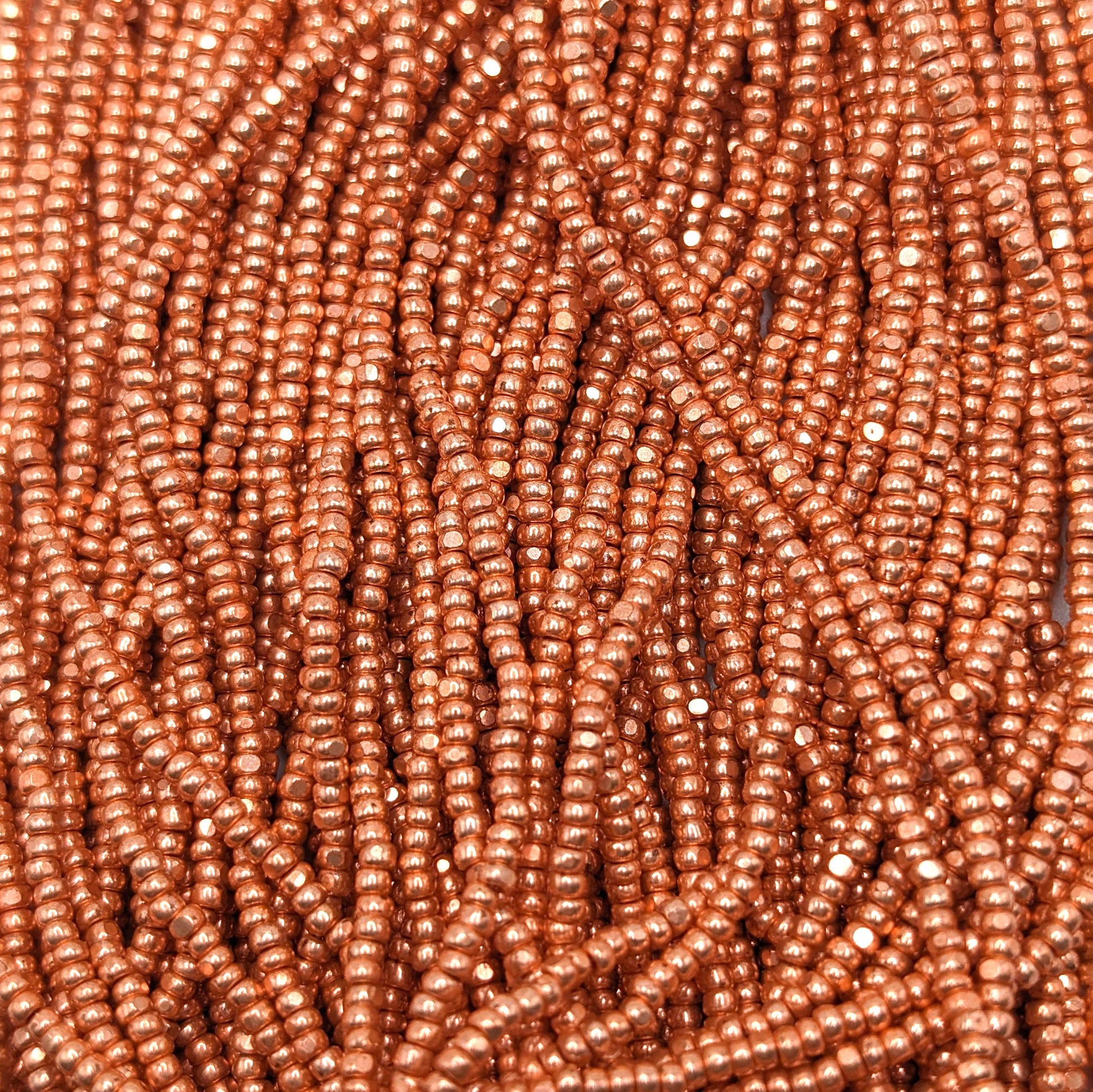 Aunty Collective carries Charlotte Cut beads in a variety of finishes, colours, and sizes. Charlotte Cut beads are round seed beads with one single cut side that offer highly reflective qualities.