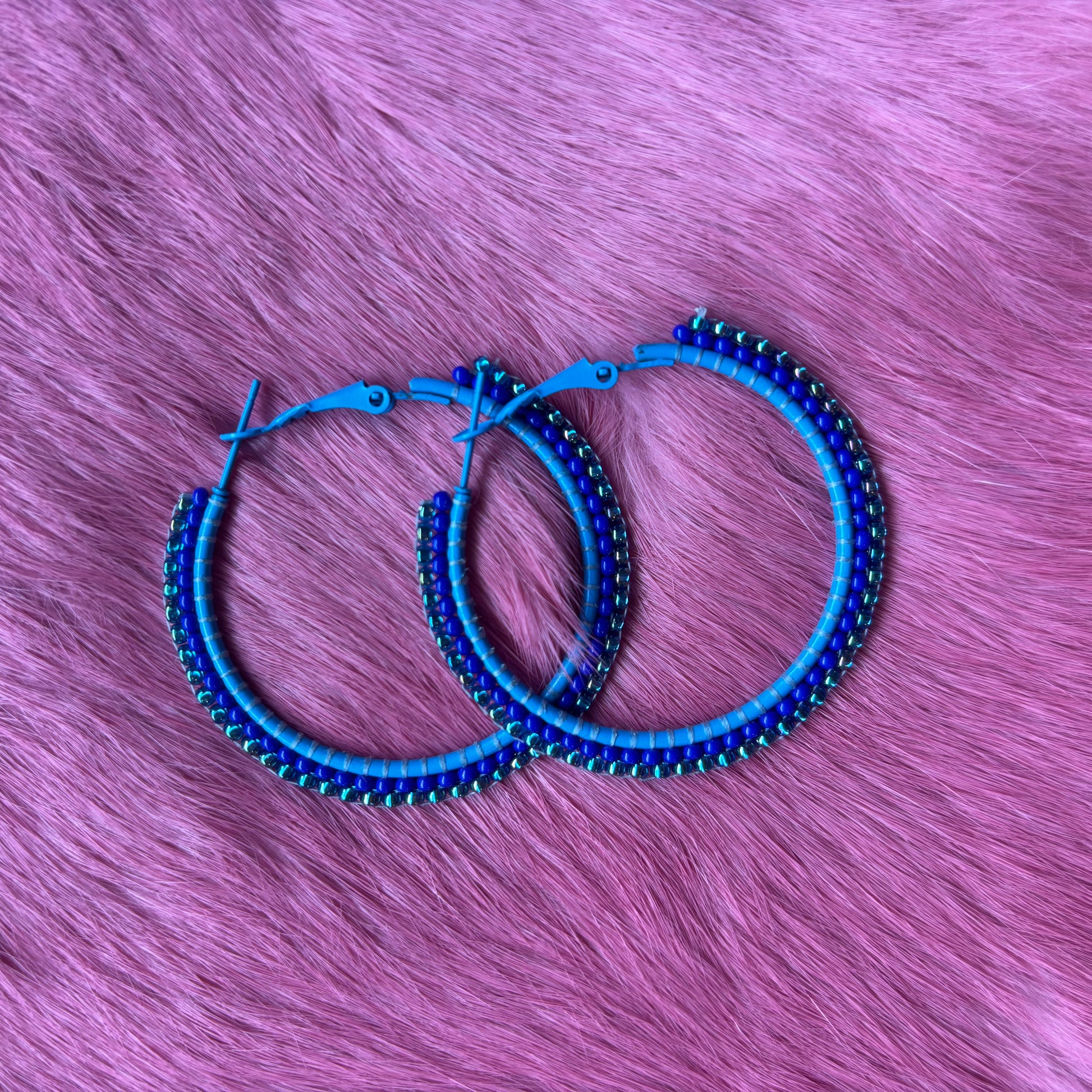 Blue Beaded Hoop Earrings