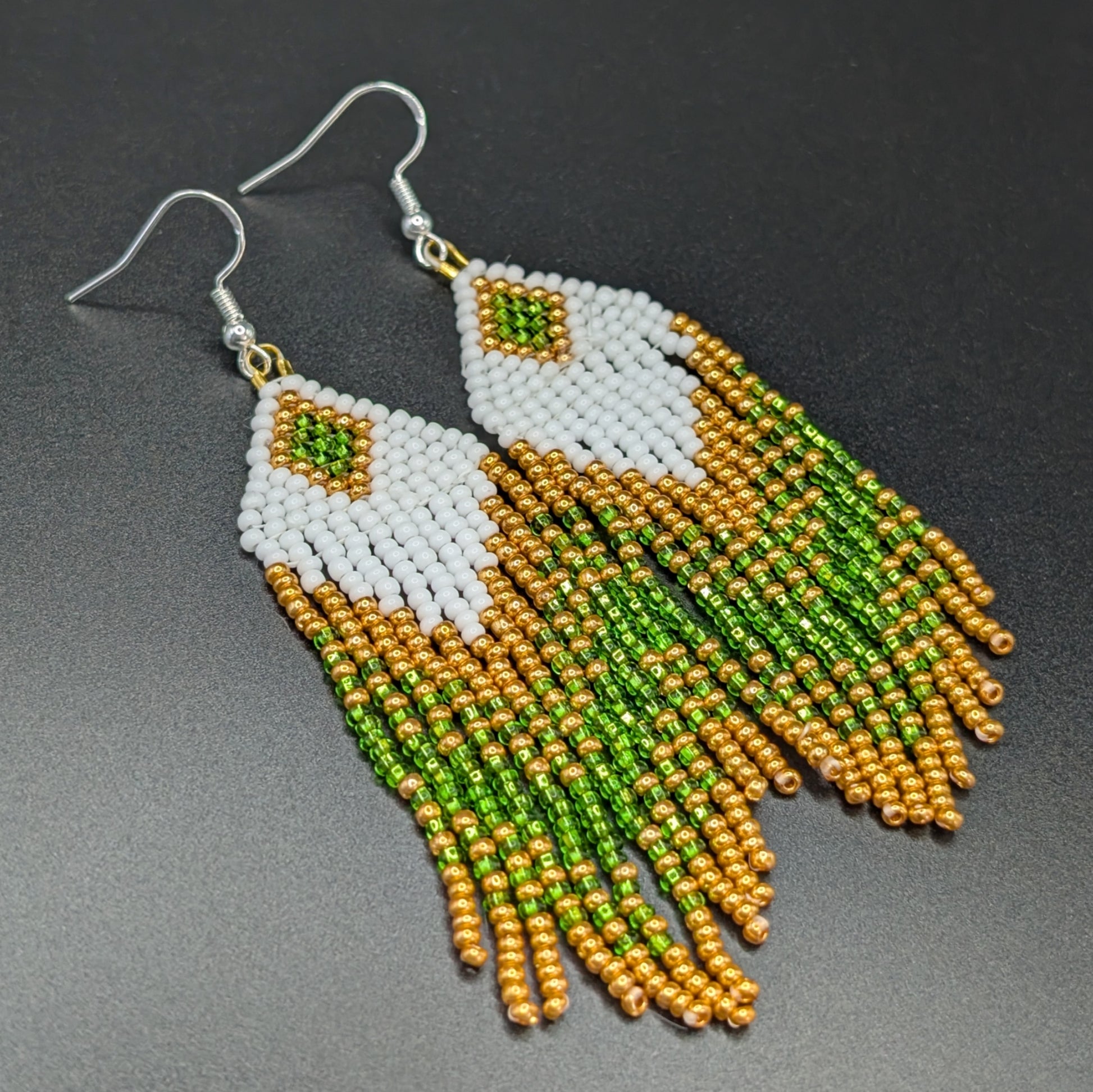 Diamond Motif Beaded Fringe Earrings Fall 2025