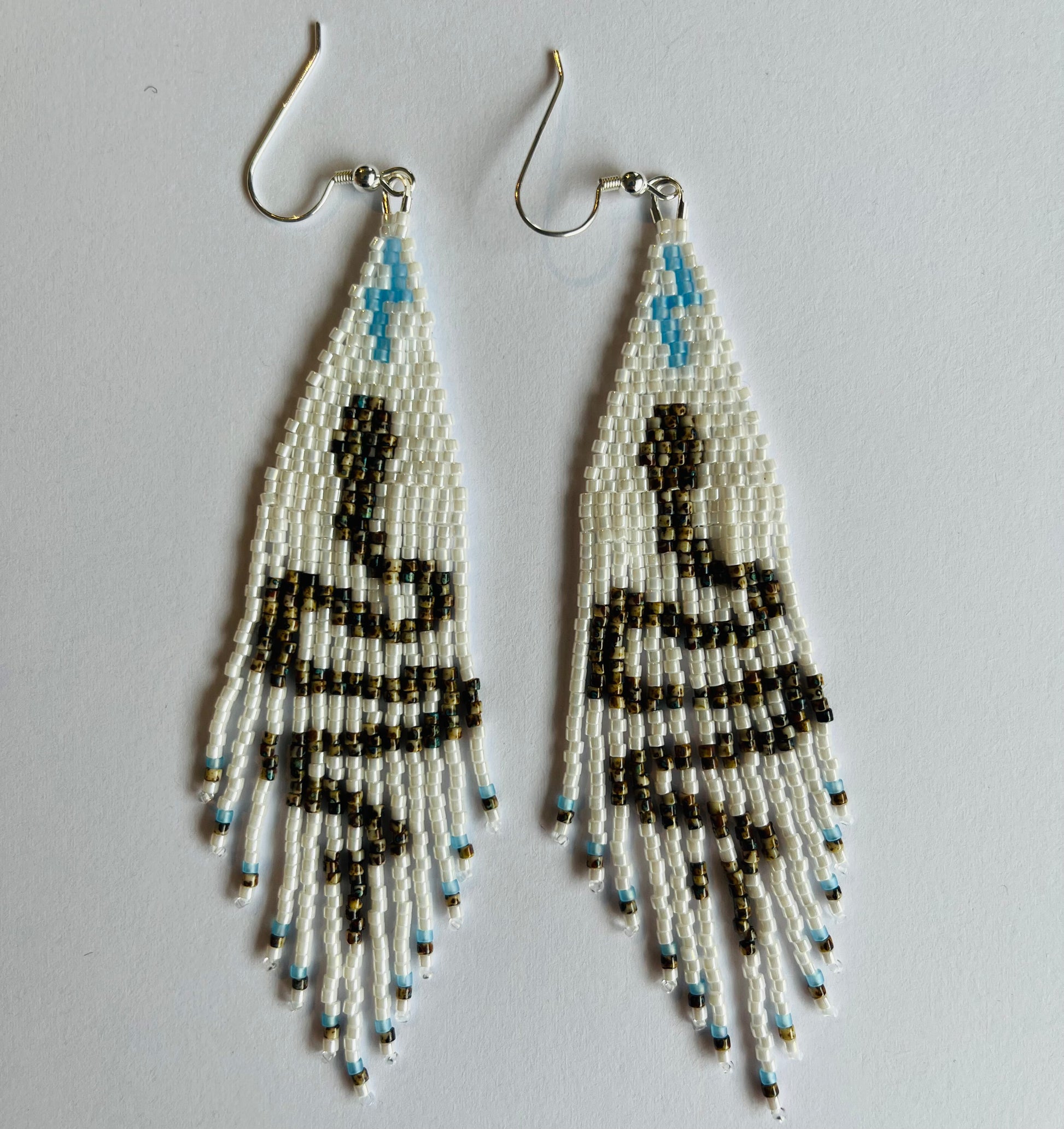 Snake Fringe Earrings in Browns and White Background